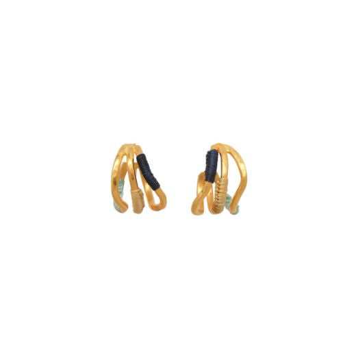 Candongas elaborados en bronce con baño en oro de 24k y tejidas a mano.